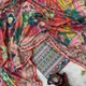 Soft Chinnon with beautiful print and Gold Zari work and Hand real mirror w..More